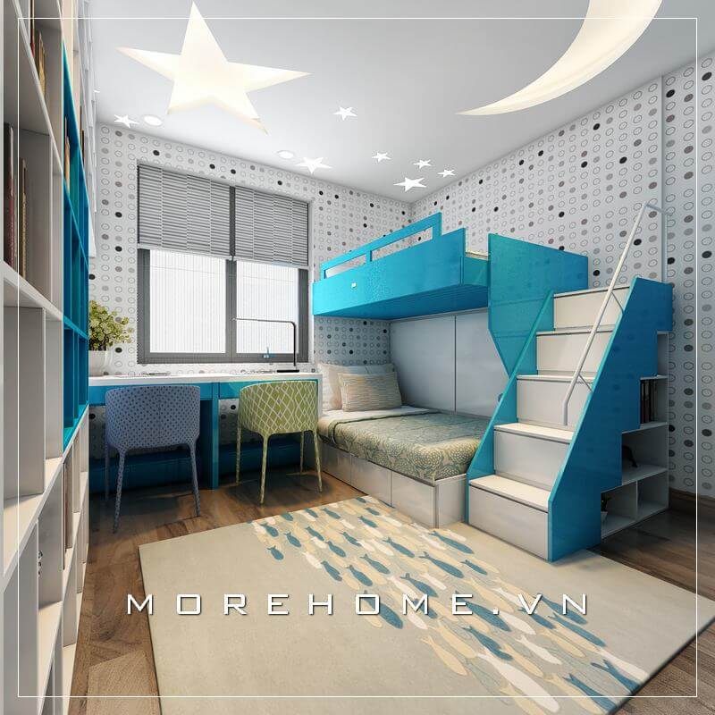 Bố mẹ thường lựa chọn phòng ngủ hiện đại, đẹp mắt, gam màu trắng - xanh cho con trai của họ làm nơi ngủ nghỉ của họ.